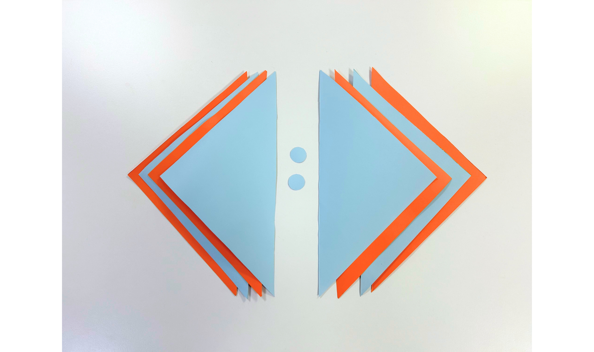 Pega el siguiente triángulo encima, en un ángulo de 45°, de forma que parezca que corta al primero por la mitad.