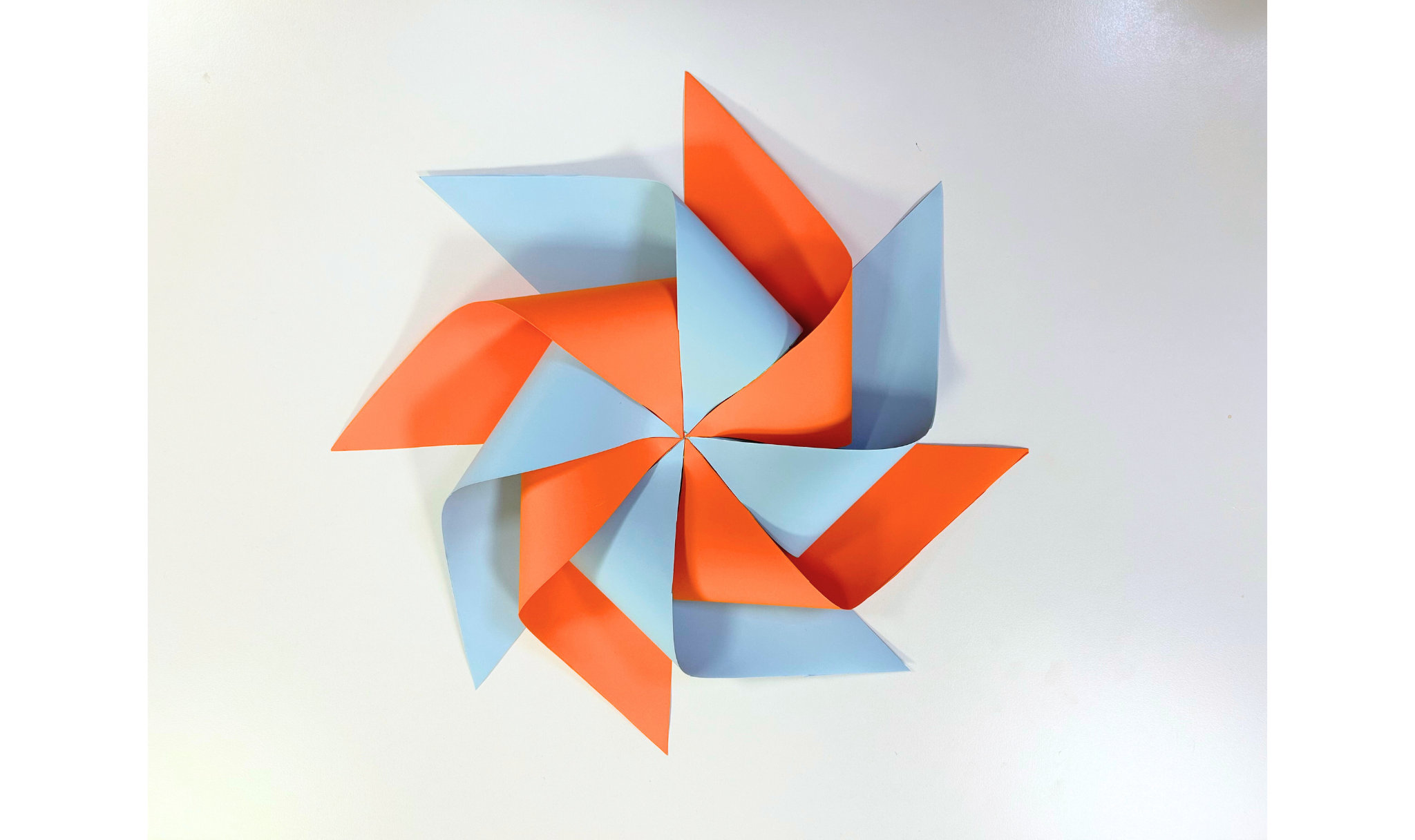 Dobla esas puntas hacia el centro del molino y asegúrate de que quedan bien fijadas.