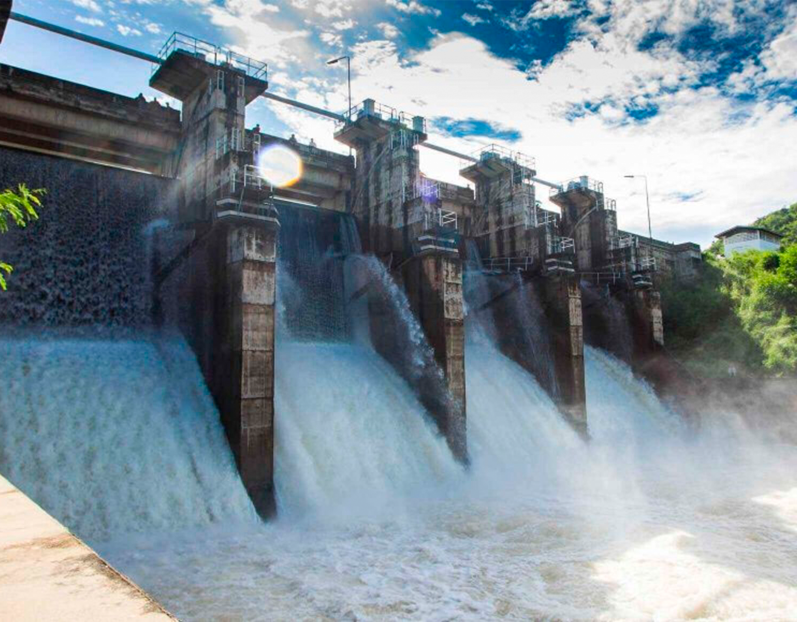 Al mismo tiempo, se construyen aliviaderos o desagües para liberar parte del agua cuando el embalse está muy lleno, sin necesidad de que pase por la sala de máquinas.