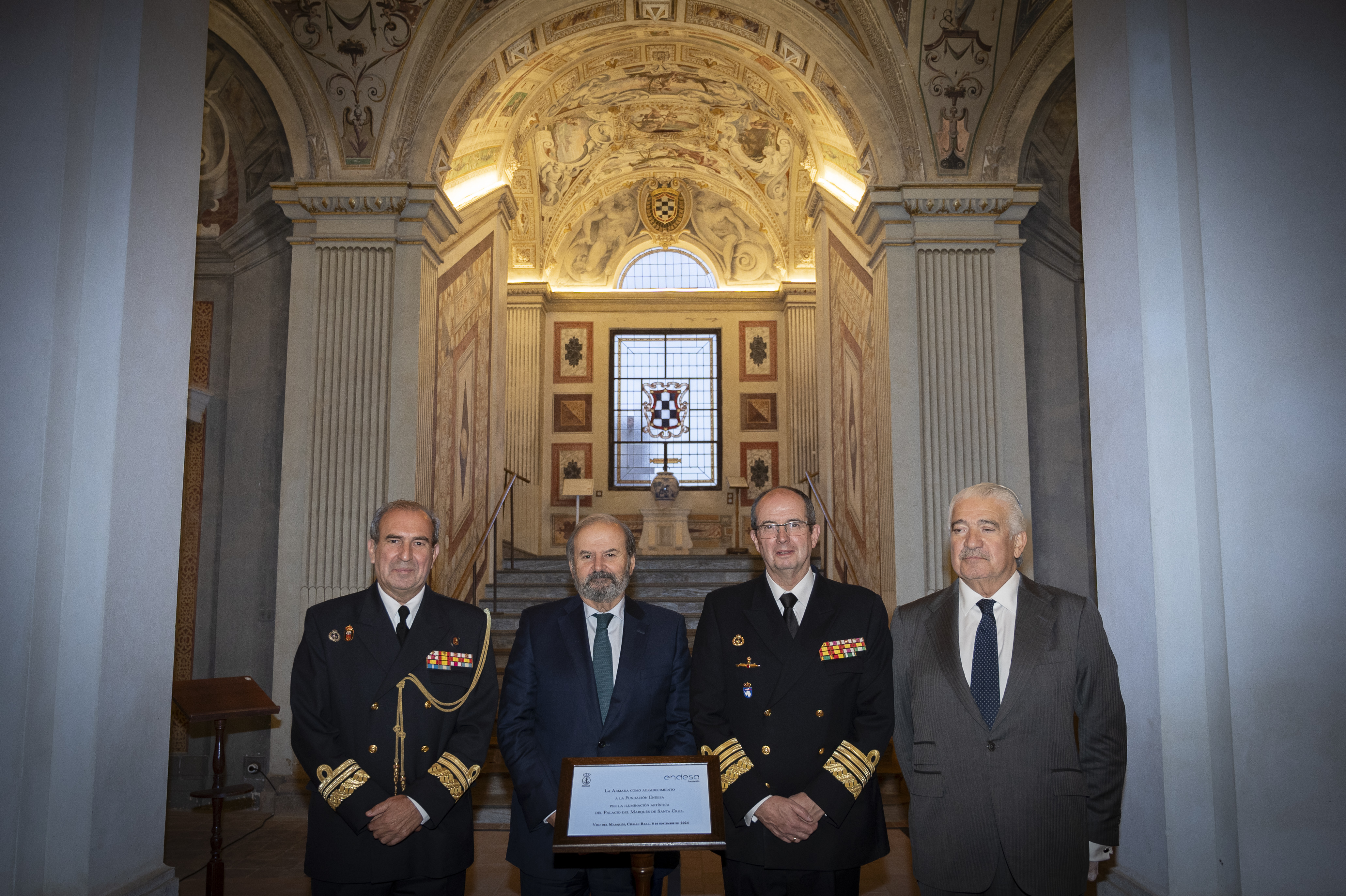 La Armada y Fundación Endesa han inaugurado la nueva iluminación artística del Palacio del Marqués de Santa Cruz, en el Viso del Marqués (Ciudad Real). Se trata de una iluminación interior envolvente que resalta el valor artístico y patrimonial del Museo Álvaro de Bazán, uno de los siete museos que el Instituto de Historia y Cultura Naval de la Armada tiene por toda la geografía española. El proyecto, que ha iluminado las bóvedas, escaleras y claustro del museo manchego con tecnología LED de alta eficiencia en tonalidad cálida, resalta la belleza del emblemático edificio renacentista italiano-genovés, construido entre los años 1564 y 1588 por orden del ilustre e invicto marino Álvaro de Bazán, primer marqués de Santa Cruz y almirante de la Armada de Felipe II.