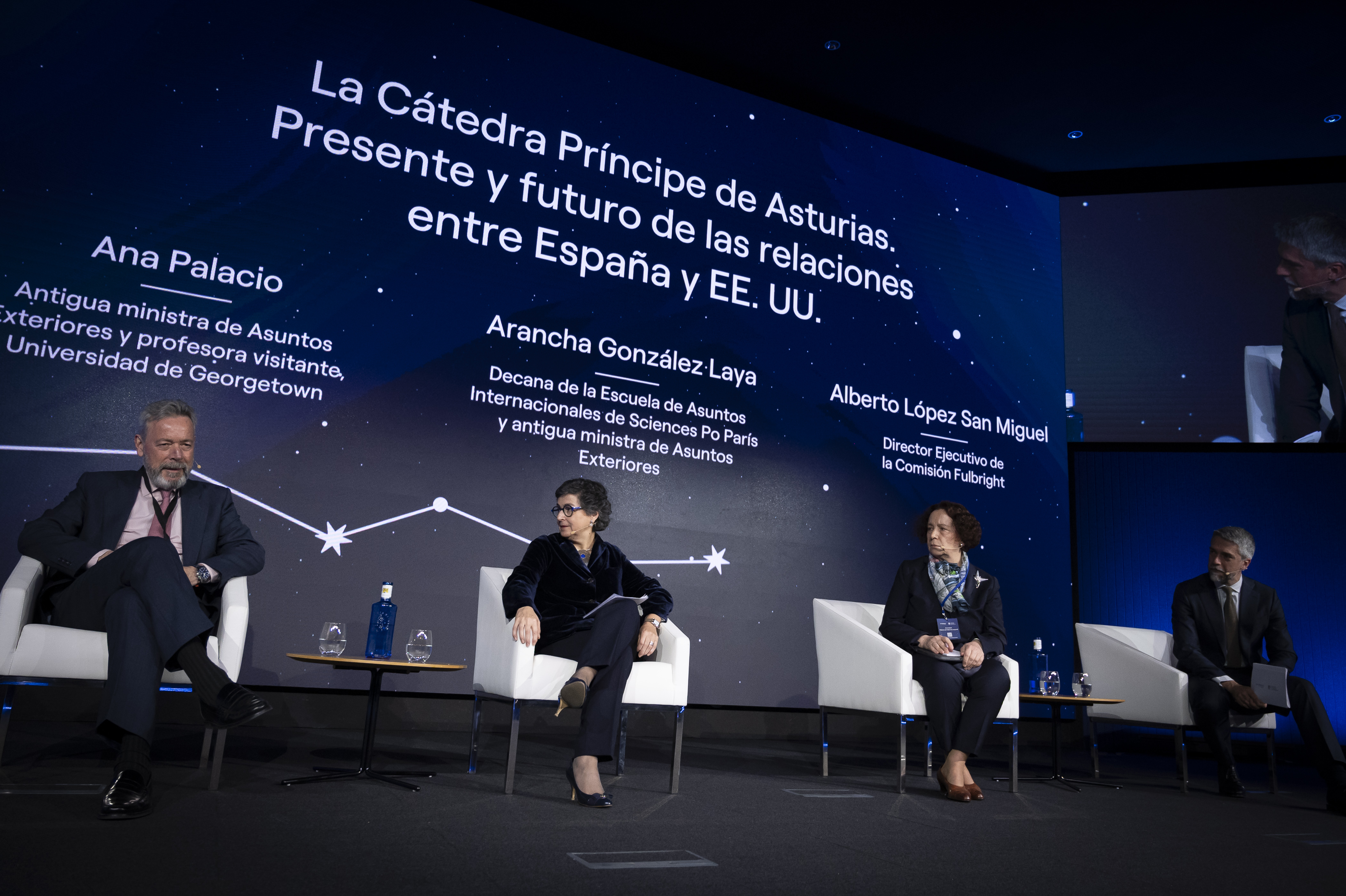 A lo largo de la mañana se ha analizado el presente y futuro de las relaciones entre España y EE. UU., en una mesa redonda en la que han participado Ana Palacio, antigua ministra de Asuntos Exteriores y profesora visitante de la Universidad de Georgetown, Arancha González Laya, ex ministra de Asuntos Exteriores y actual decana de la Escuela de Asuntos Internacionales de París, y Alberto López San Miguel, director ejecutivo de la Comisión Fulbright.